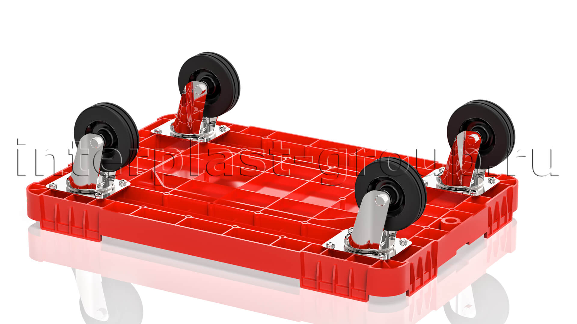 Тележка пластиковая сплошная без тормозов красная в Нижнем Тагиле
