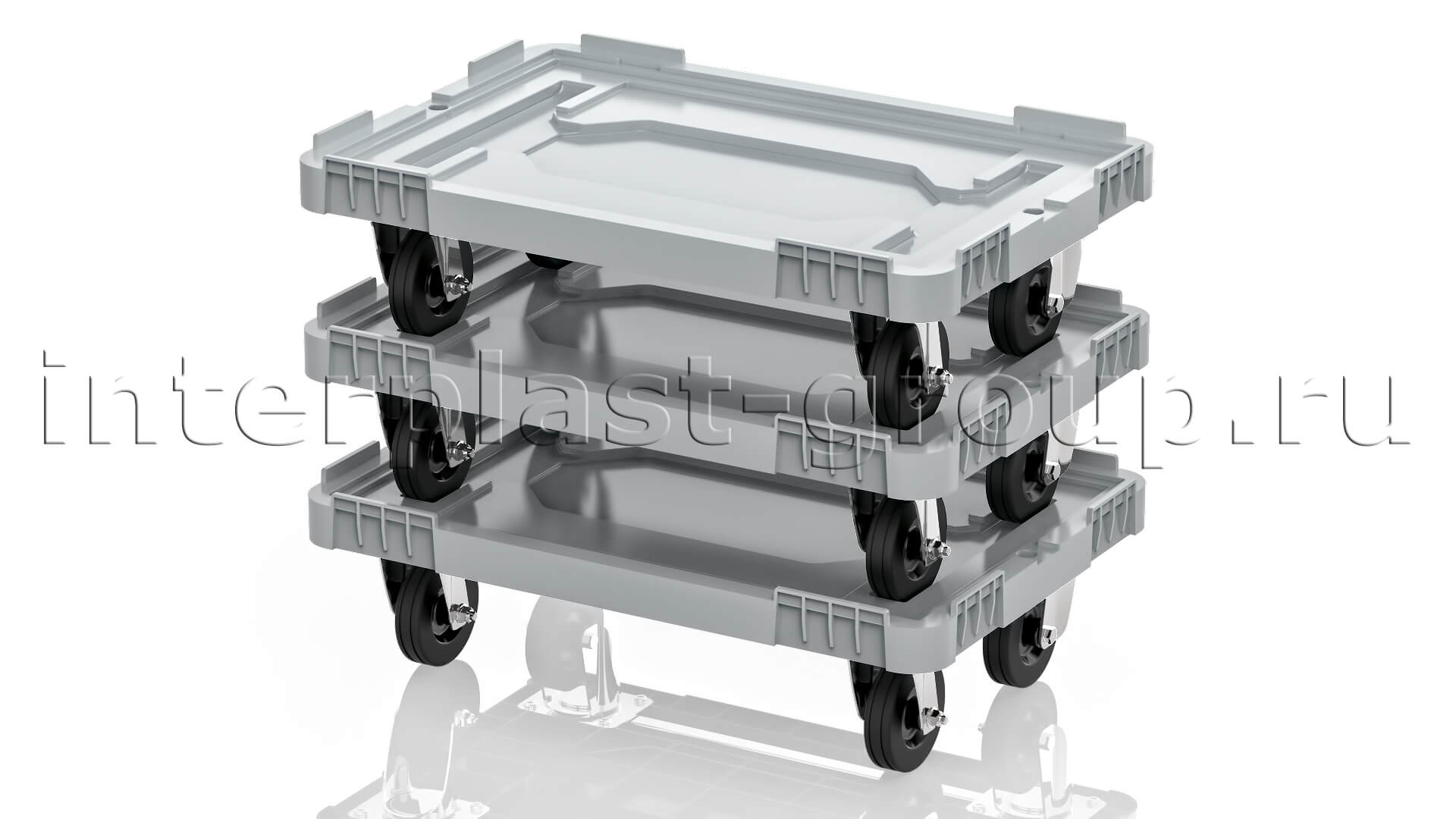 Тележка пластиковая сплошная без тормозов усиленная серая