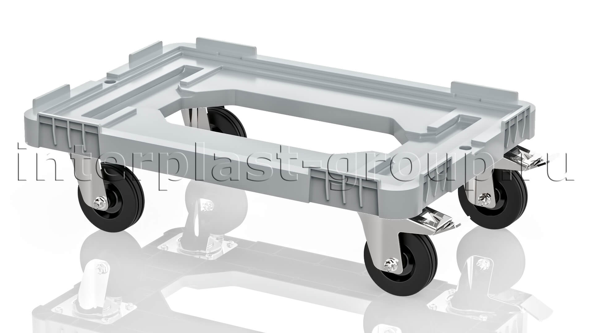 Тележка пластиковая с отверстием 2 колеса с тормозом серая