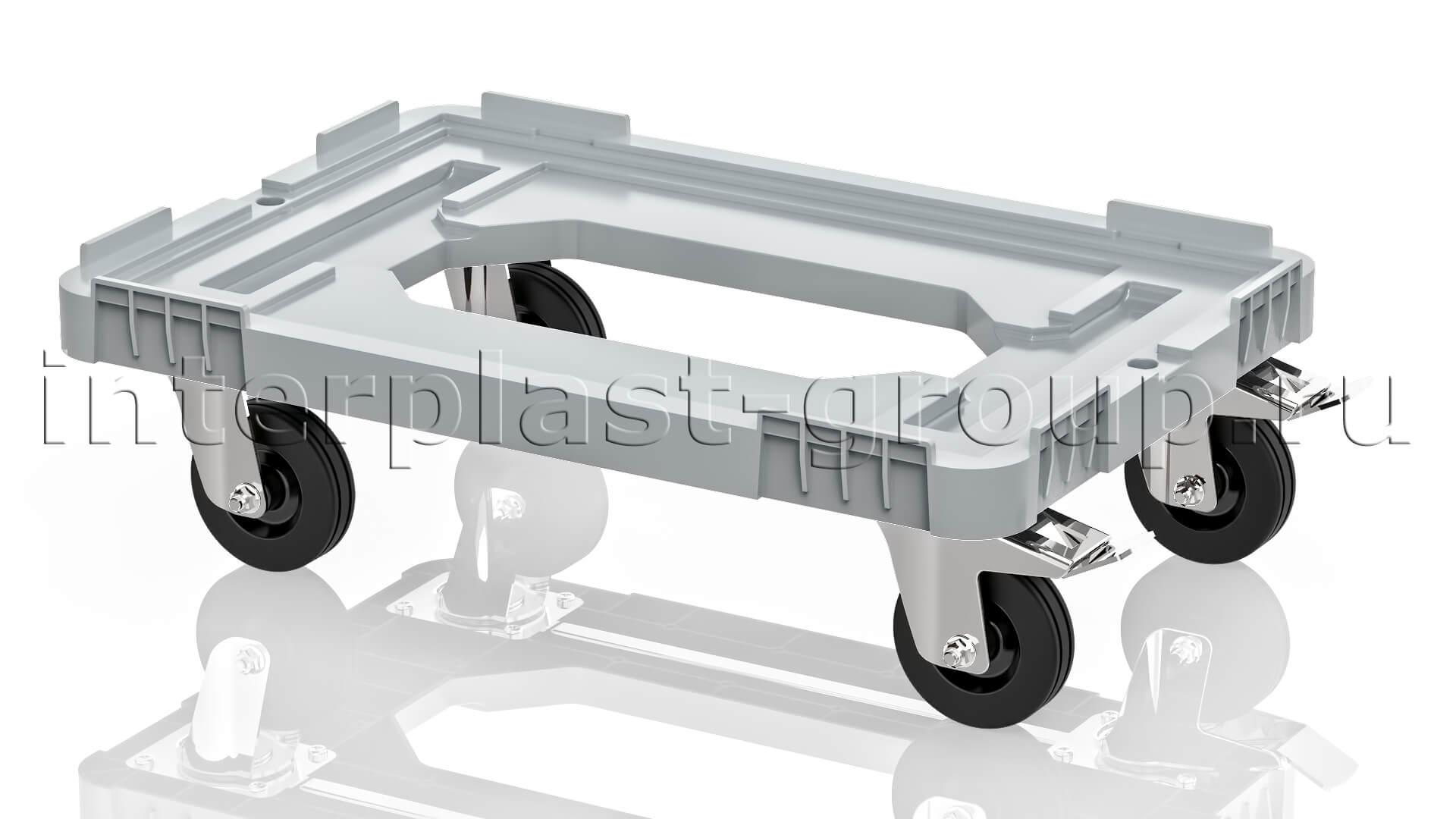 Тележка пластиковая с отверстием 2 колеса с тормозом усиленная серая в Нижнем Тагиле