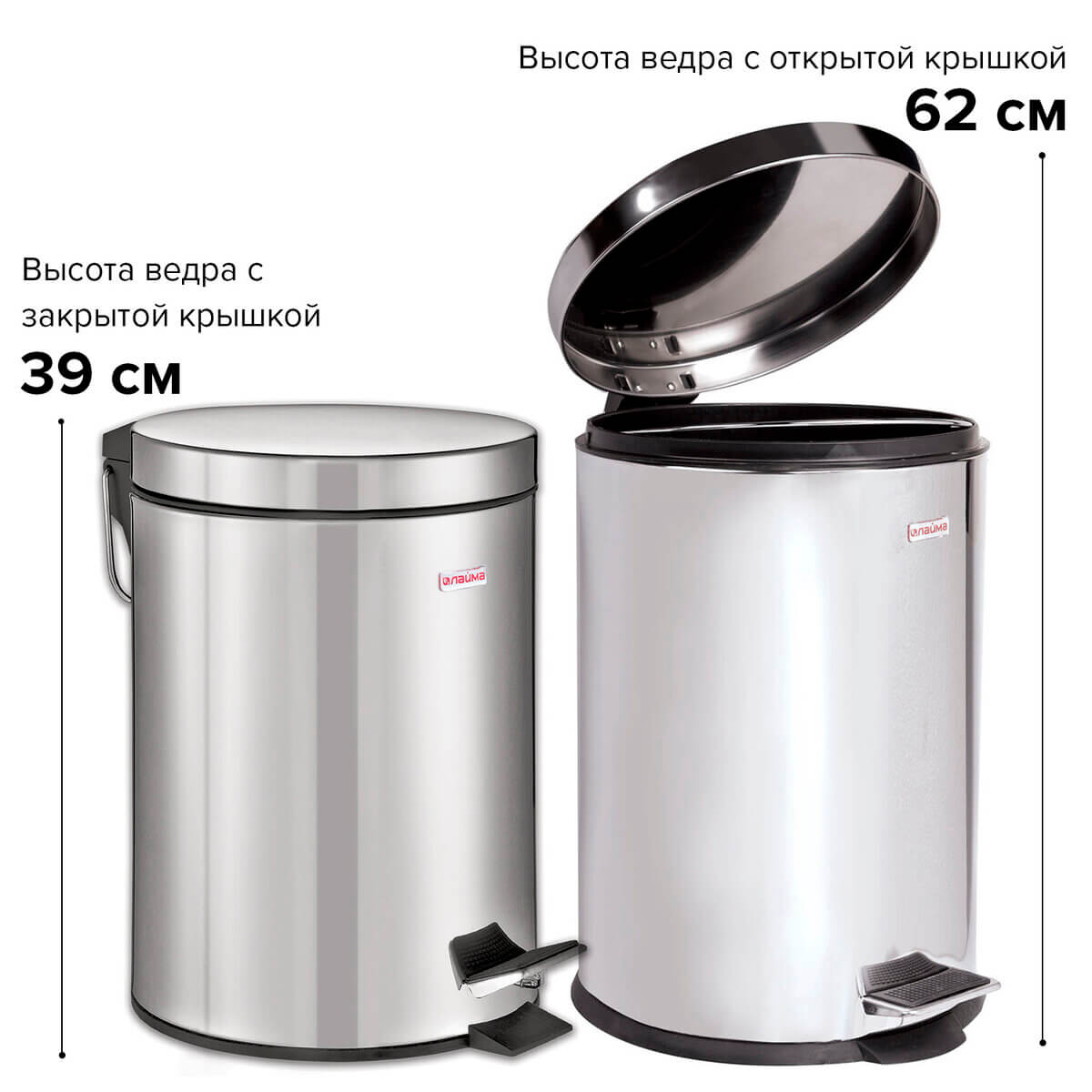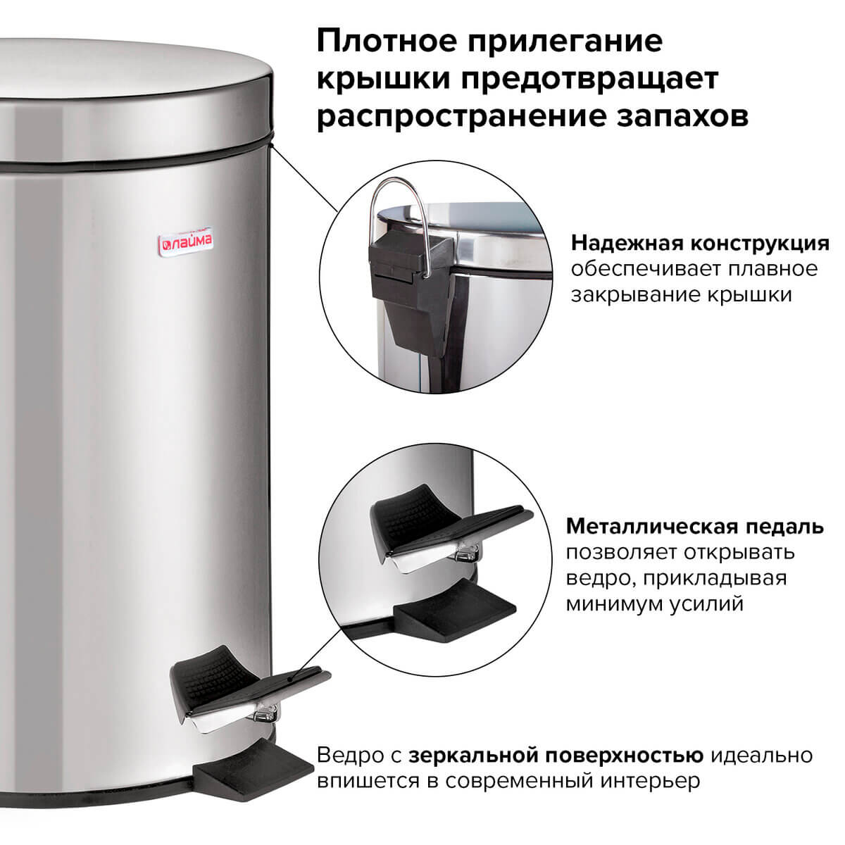 Ведро-контейнер для мусора (урна) с педалью LAIMA Classic, 12 л, зеркальное, нержавеющая сталь, со съемным внутренним ведром