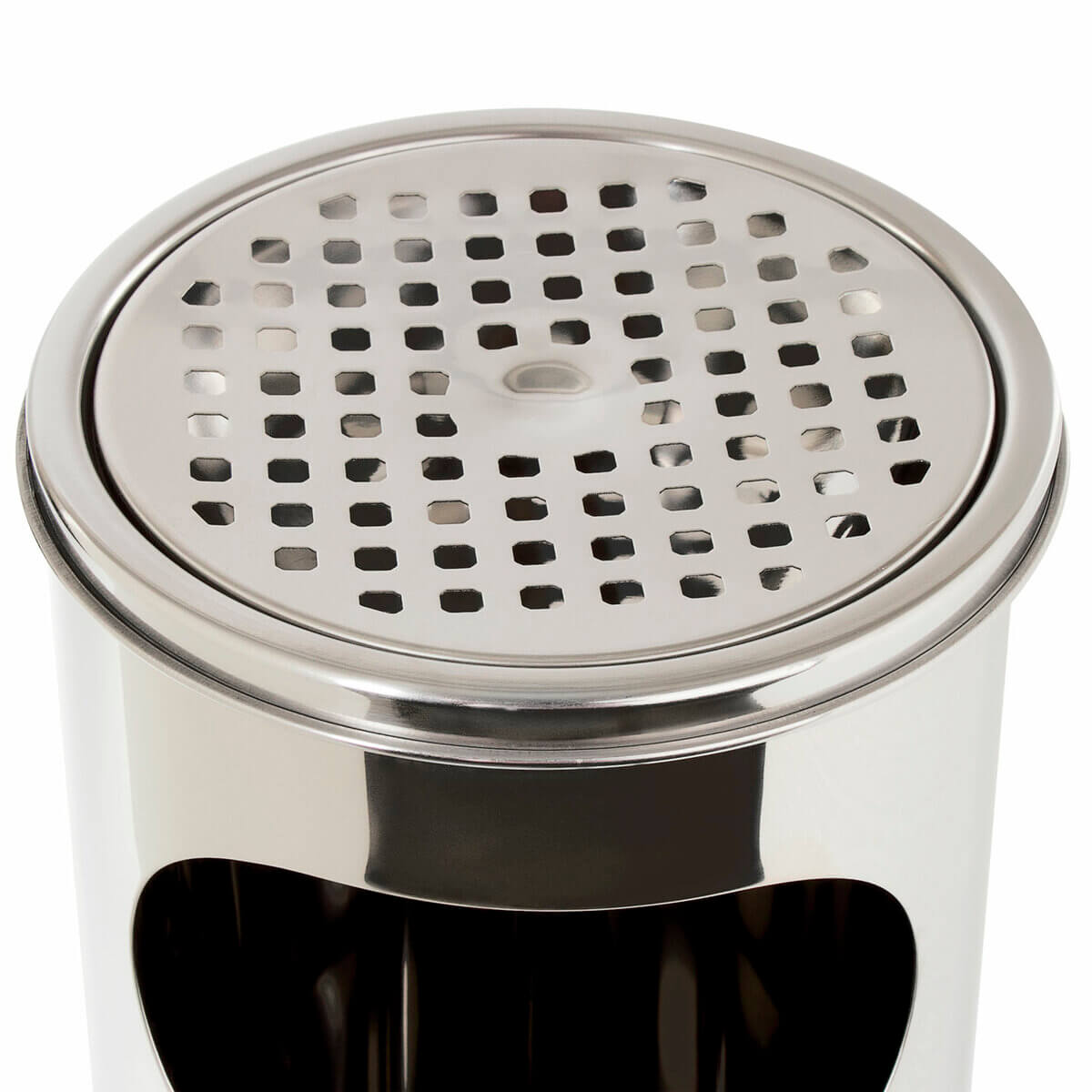 Боковое окно урны дает возможность бросать более крупные предметы, что делает процесс утилизации максимально удобным.