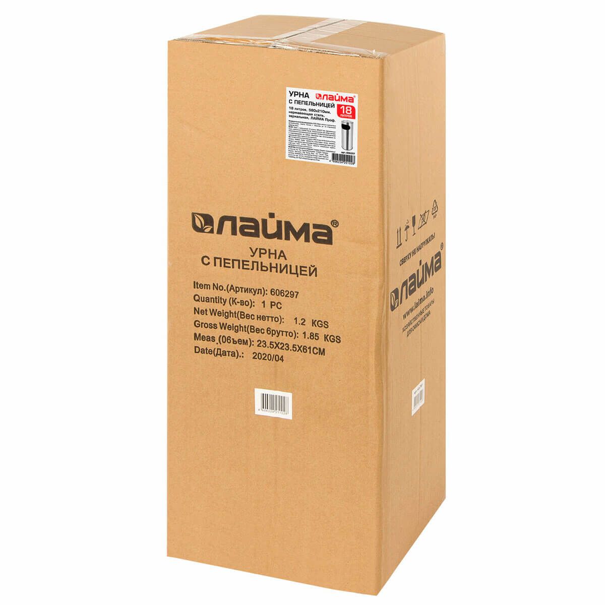 Урна с пепельницей 18 литров, нержавеющая сталь, зеркальная, LAIMA PROFESSIONAL в Нижнем Тагиле
