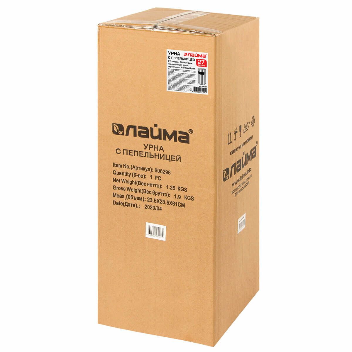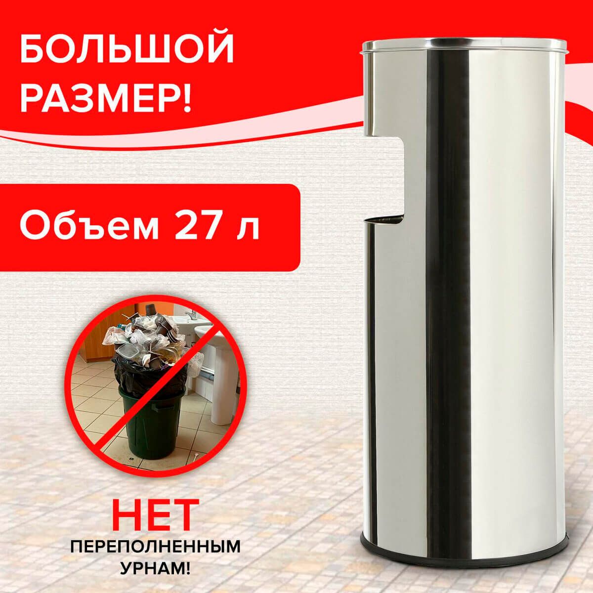 Урна с пепельницей 27 л, нержавеющая сталь, зеркальная, LAIMA PROFESSIONAL в Нижнем Тагиле