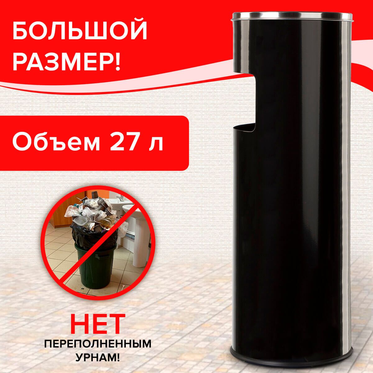 Урна с пепельницей 27 л, нержавеющая сталь, черная, LAIMA PROFESSIONAL в Нижнем Тагиле